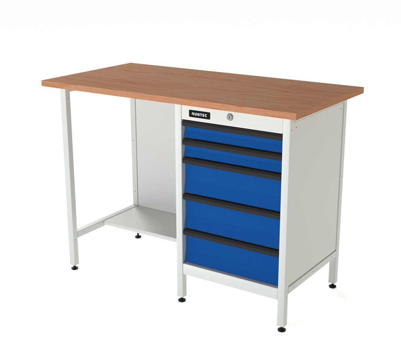 Верстак серии Standart, 1200 мм, фанера, тумба с 5-ю ящиками, синий (светло-серый) RAL 5005 (7035)