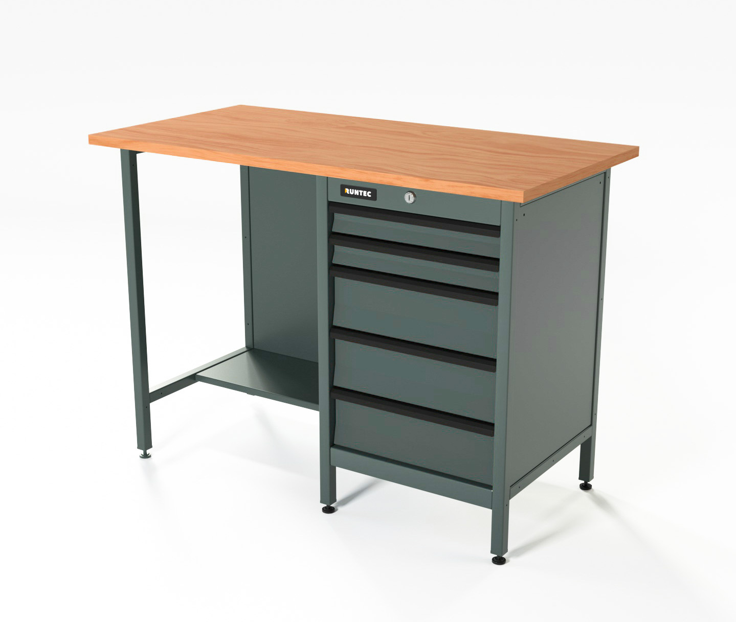 Верстак серии Standart, 1200 мм, фанера, тумба с 5-ю ящиками, серый RAL 7016