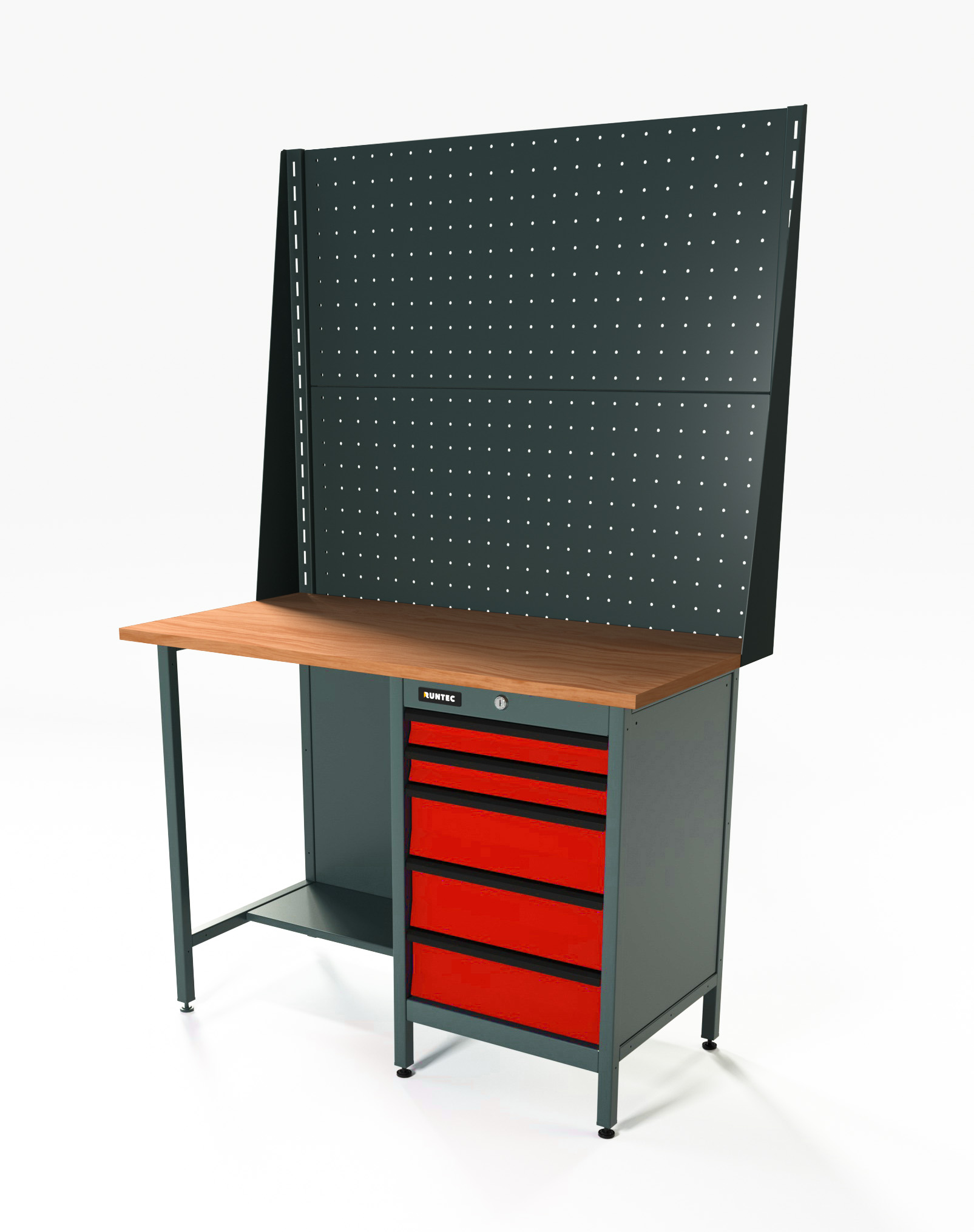 Верстак серии Standart, 1200 мм, фанера, тумба с 5-ю ящиками, экран 1000, красный RAL 3020