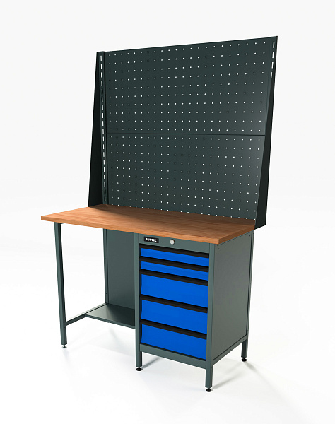 Верстак серии Standart, 1200 мм, фанера, тумба с 5-ю ящиками, экран 1000, синий RAL 5005