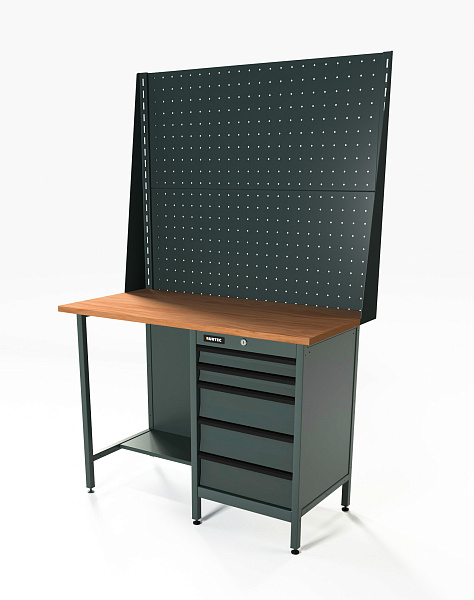 Верстак серии Standart, 1200 мм, фанера, тумба с 5-ю ящиками, экран 1000, серый RAL 7016