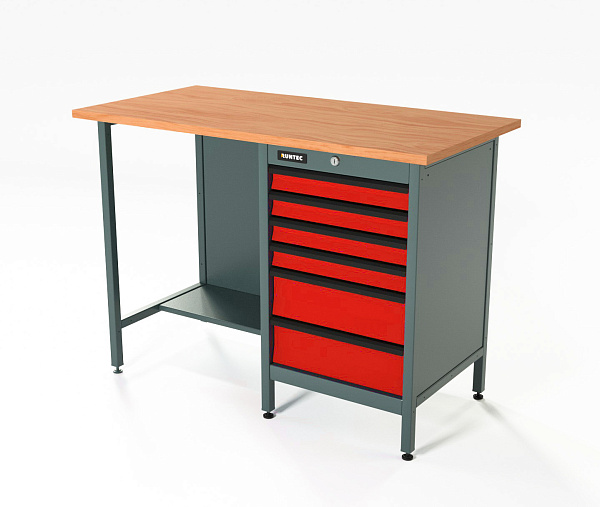 Верстак серии Standart, 1200 мм, фанера, тумба с 6-ю ящиками, красный RAL 3020