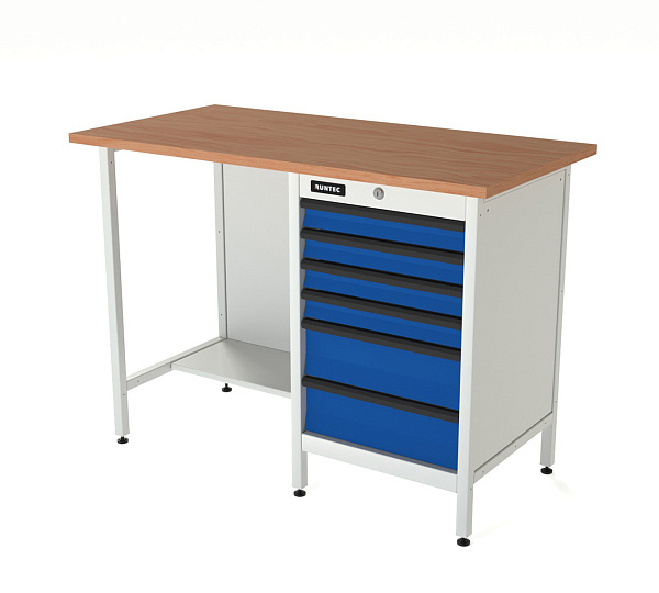 Верстак серии Standart, 1200 мм, фанера, тумба с 6-ю ящиками, синий (светло-серый) RAL 5005 (7035)