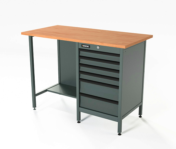 Верстак серии Standart, 1200 мм, фанера, тумба с 6-ю ящиками, серый RAL 7016