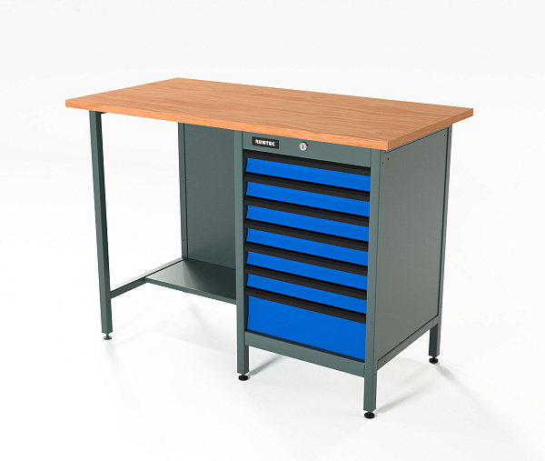 Верстак серии Standart, 1200 мм, фанера, тумба с 7-ю ящиками, синий RAL 5005, RUNTEC, RTS12F-TS7-NS-5005
