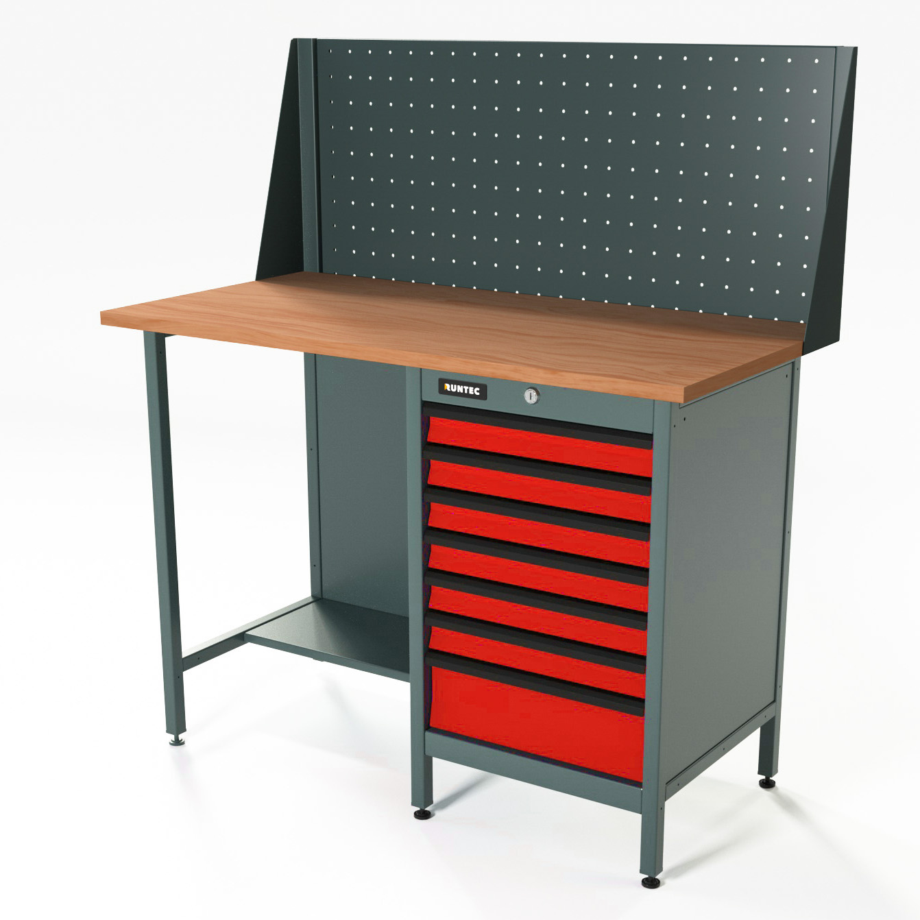 Верстак серии Standart, 1200 мм, фанера, тумба с 7-ю ящиками, экран 500, красный RAL 3020