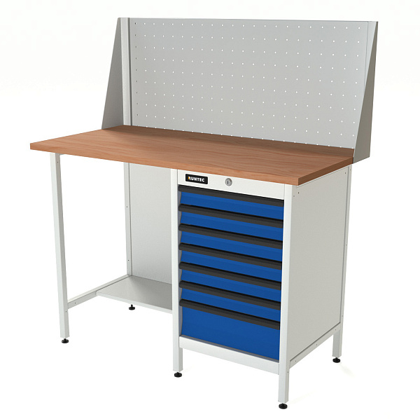 Верстак серии Standart, 1200 мм, фанера, тумба с 7-ю ящиками, экран 500, синий (светло-серый) RAL 5005 (7035)