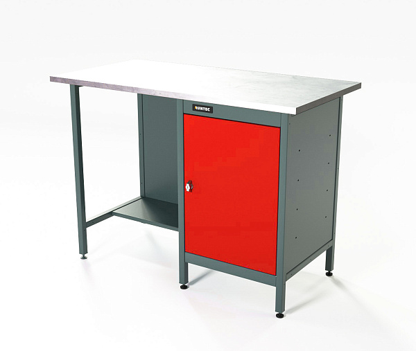 Верстак серии Standart, 1200 мм, оцинк, тумба с дверью, красный RAL 3020, RUNTEC, RTS12Z-TS0-NS-3020