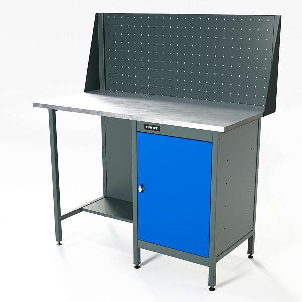 Верстак серии Standart, 1200 мм, оцинк, тумба с дверью, экран 500, синий RAL 5005, RUNTEC, RTS12Z-TS0-NS-P12-5005