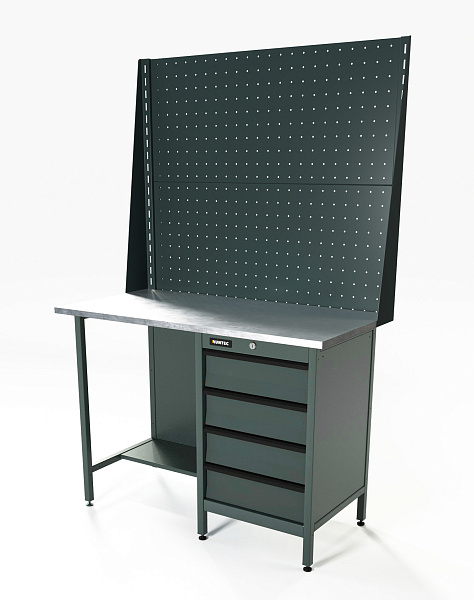 Верстак серии Standart, 1200 мм, оцинк, тумба с 4-мя ящиками, экран 1000, серый RAL 7016, RUNTEC, RTS12Z-TS4-NS-P12-P12-7016