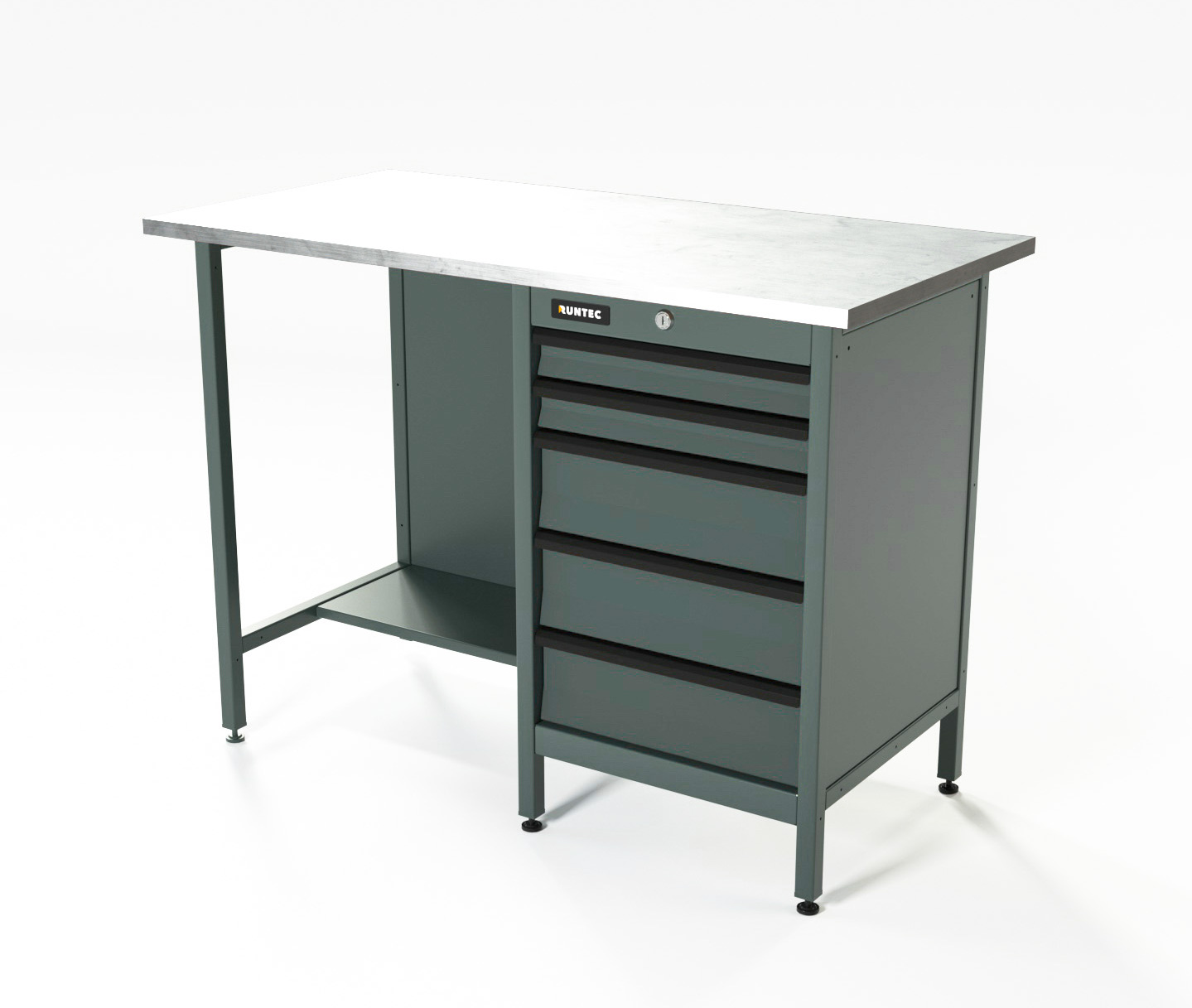 Верстак серии Standart, 1200 мм, оцинк, тумба с 5-ю ящиками, серый RAL 7016