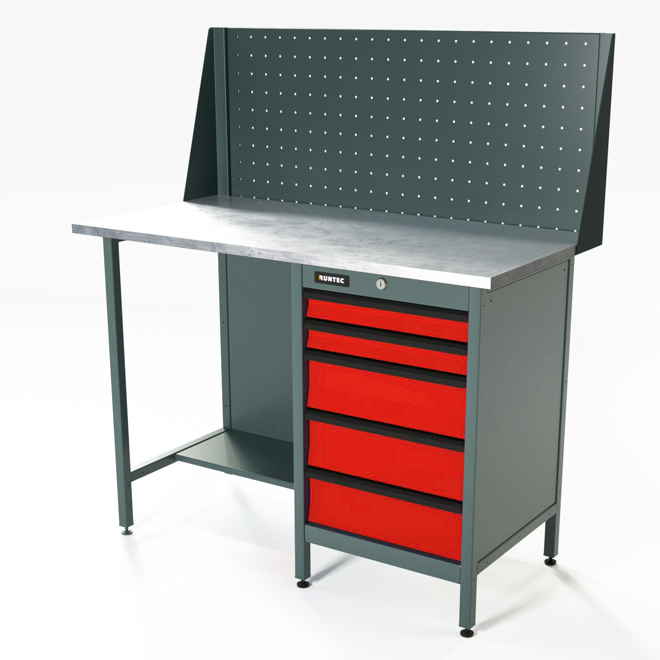 Верстак серии Standart, 1200 мм, оцинк, тумба с 5-ю ящиками, экран 500, красный RAL 3020