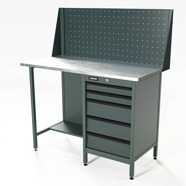Верстак серии Standart, 1200 мм, оцинк, тумба с 5-ю ящиками, экран 500, серый RAL 7016