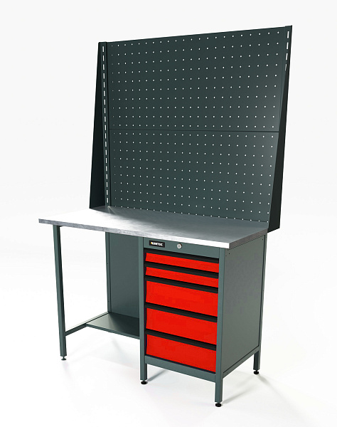 Верстак серии Standart, 1200 мм, оцинк, тумба с 5-ю ящиками, экран 1000, красный RAL 3020