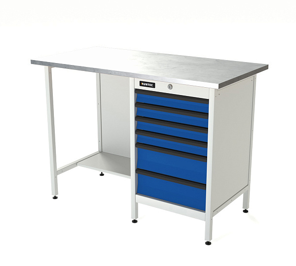 Верстак серии Standart, 1200 мм, оцинк, тумба с 6-ю ящиками, синий (светло-серый) RAL 5005 (7035), RUNTEC, RTS12Z-TS6-NS-5005(7035)