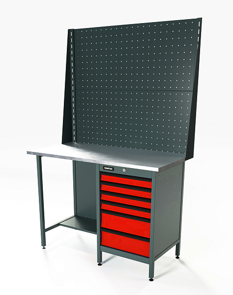 Верстак серии Standart, 1200 мм, оцинк, тумба с 6-ю ящиками, экран 1000, красный RAL 3020, RUNTEC, RTS12Z-TS6-NS-P12-P12-3020