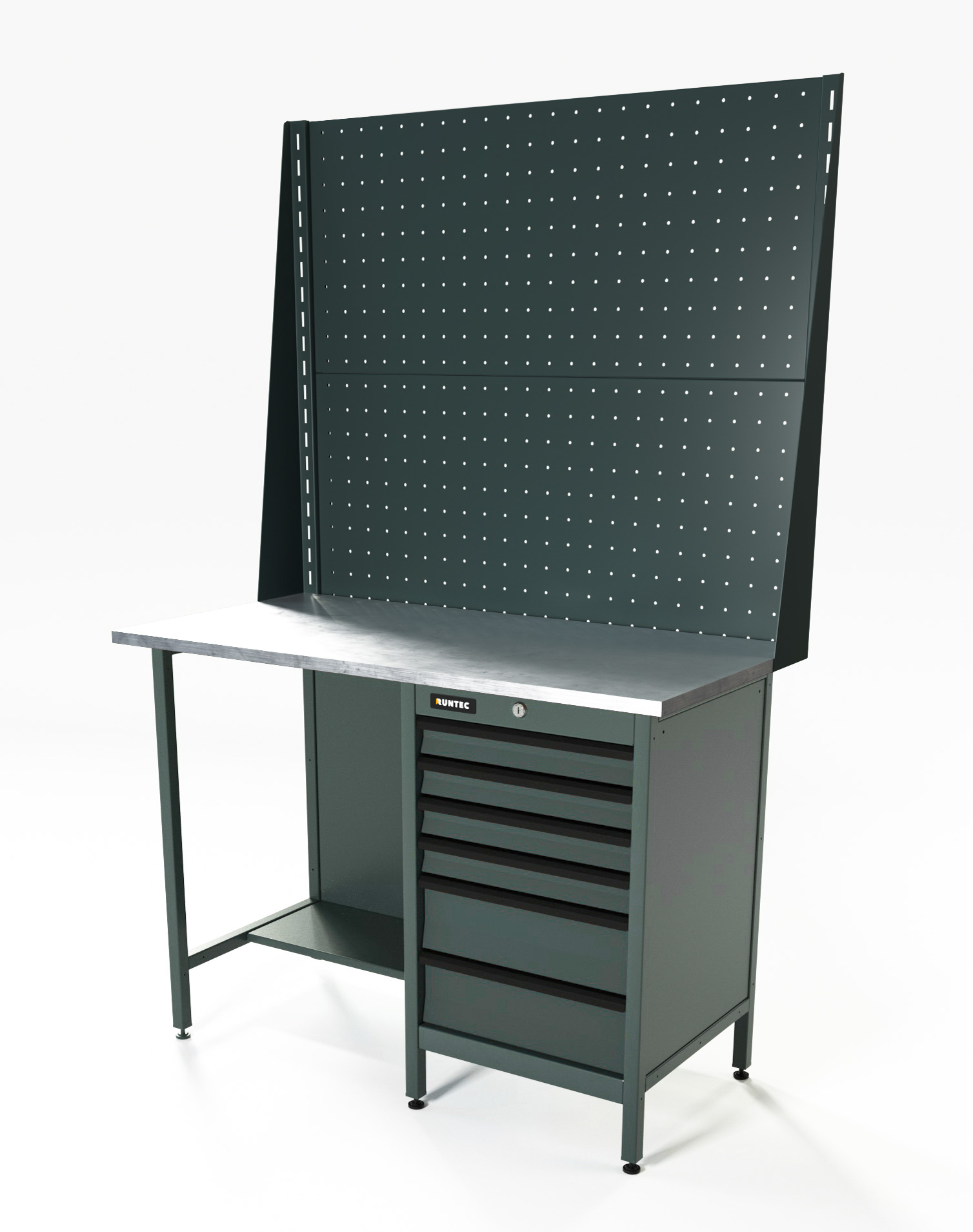 Верстак серии Standart, 1200 мм, оцинк, тумба с 6-ю ящиками, экран 1000, серый RAL 7016