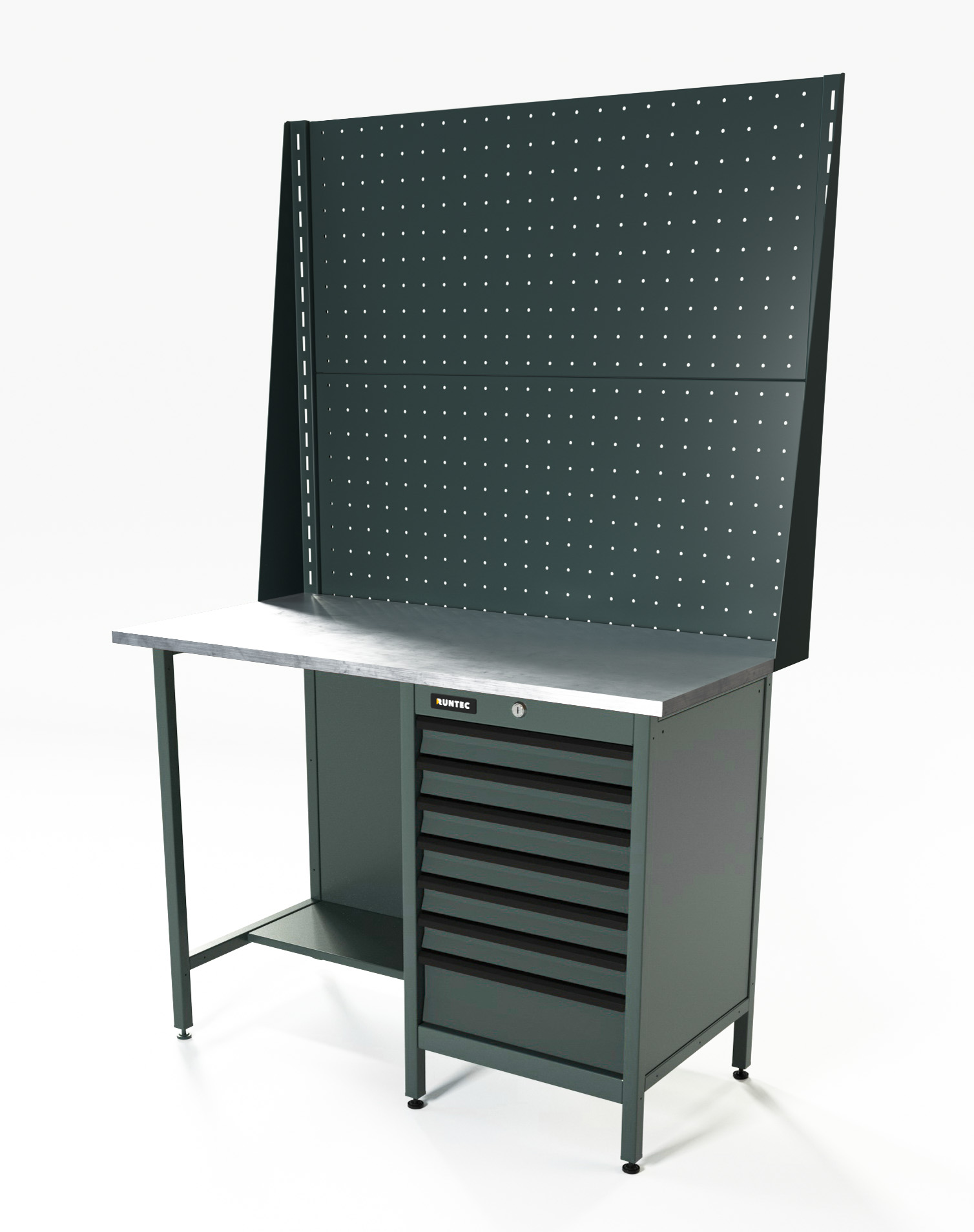 Верстак серии Standart, 1200 мм, оцинк, тумба с 7-ю ящиками, экран 1000, серый RAL 7016