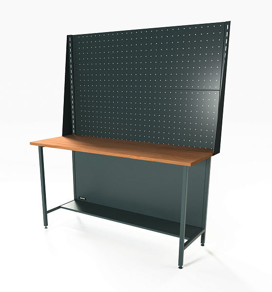Верстак серии Standart, 1600 мм, фанера, экран 1000, серый RAL 7016, RUNTEC, RTS16F-NS-NS-P16-P16-7016