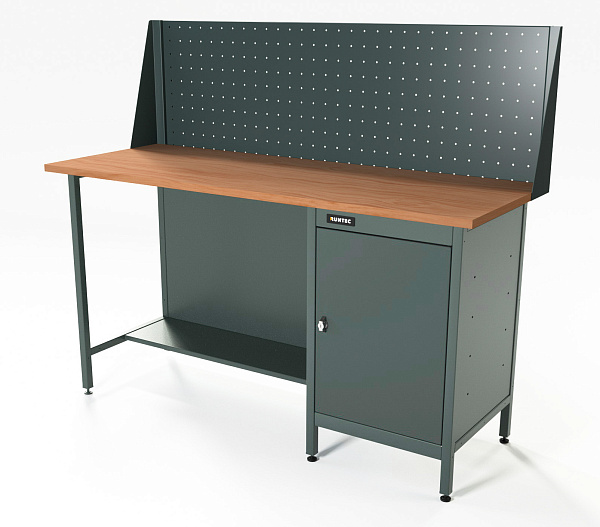 Верстак серии Standart, 1600 мм, фанера, тумба с дверью, экран 500, серый RAL 7016