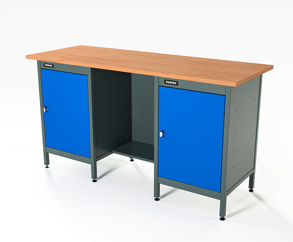 Верстак серии Standart, 1600 мм, фанера, тумба с дверью + тумба с дверью, синий RAL 5005