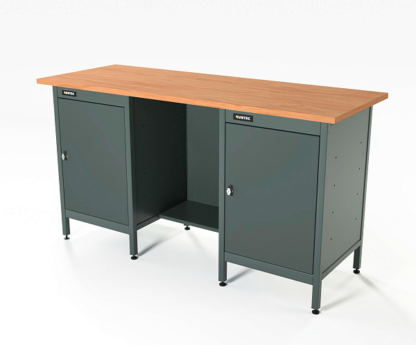 Верстак серии Standart, 1600 мм, фанера, тумба с дверью + тумба с дверью, серый RAL 7016, RUNTEC, RTS16F-TS0-TS0-7016
