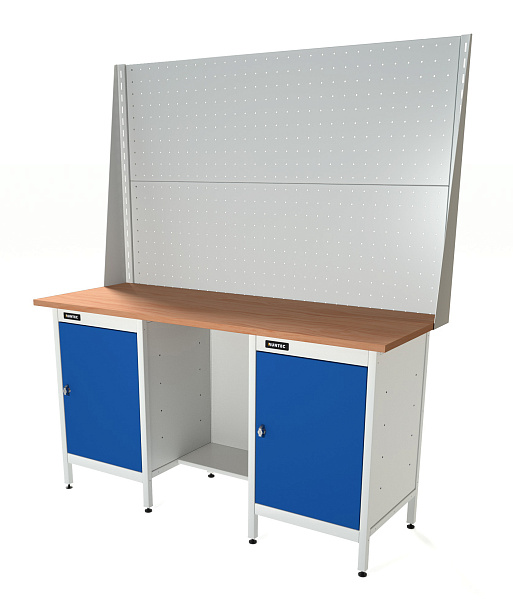 Верстак серии Standart, 1600 мм, фанера, тумба с дверью + тумба с дверью, экран 1000, синий (светло-серый) RAL 5005 (703