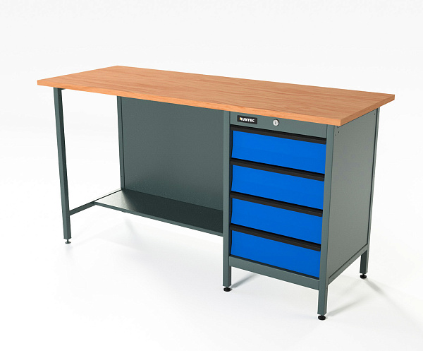 Верстак серии Standart, 1600 мм, фанера, тумба с 4-мя ящиками, синий RAL 5005, RUNTEC, RTS16F-TS4-NS-5005