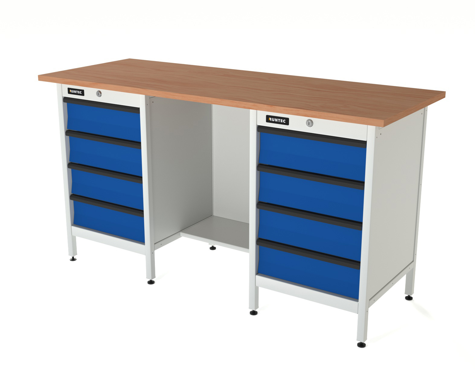 Верстак серии Standart, 1600 мм, фанера, тумба с 4-мя ящиками + тумба с 4-мя ящиками, синий (светло-серый) RAL 5005 (703