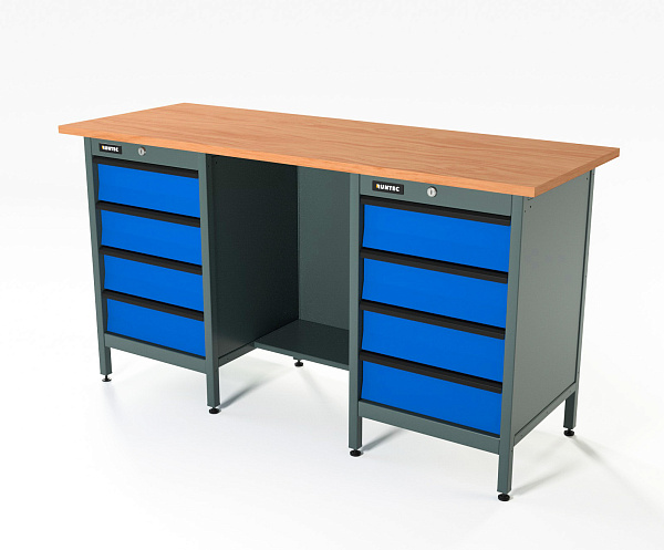 Верстак серии Standart, 1600 мм, фанера, тумба с 4-мя ящиками + тумба с 4-мя ящиками, синий RAL 5005, RUNTEC, RTS16F-TS4-TS4-5005