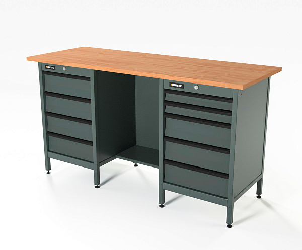 Верстак серии Standart, 1600 мм, фанера, тумба с 4-мя ящиками + тумба с 5-ю ящиками, серый RAL 7016, RUNTEC, RTS16F-TS4-TS5-7016