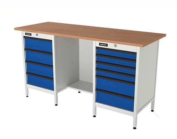Верстак серии Standart, 1600 мм, фанера, тумба с 4-мя ящиками + тумба с 6-ю ящиками, синий (светло-серый) RAL 5005 (7035