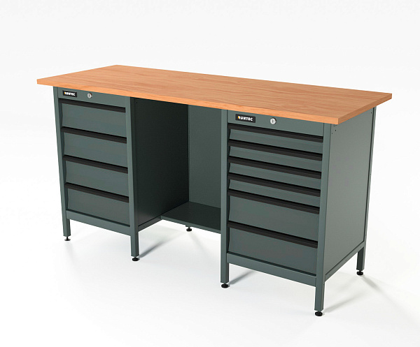 Верстак серии Standart, 1600 мм, фанера, тумба с 4-мя ящиками + тумба с 6-ю ящиками, серый RAL 7016