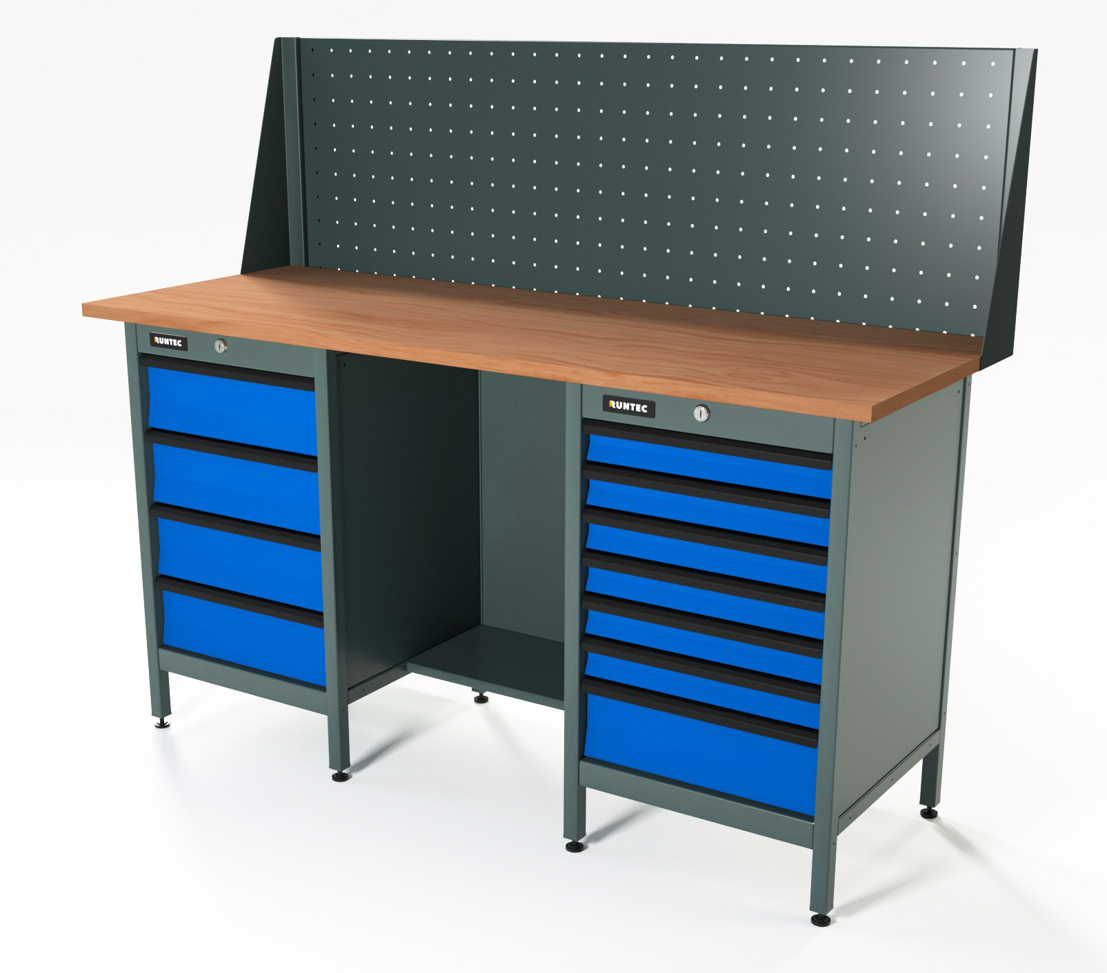 Верстак серии Standart, 1600 мм, фанера, тумба с 4-мя ящиками + тумба с 7-ю ящиками, экран 500, синий RAL 5005