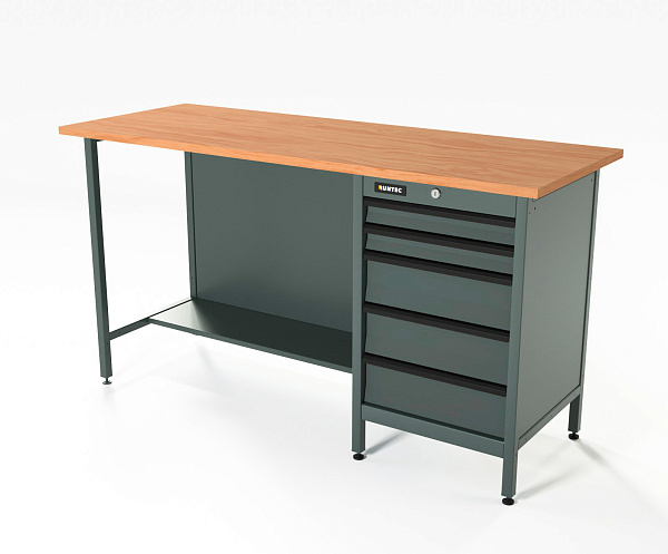 Верстак серии Standart, 1600 мм, фанера, тумба с 5-ю ящиками, серый RAL 7016