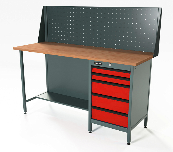 Верстак серии Standart, 1600 мм, фанера, тумба с 5-ю ящиками, экран 500, красный RAL 3020