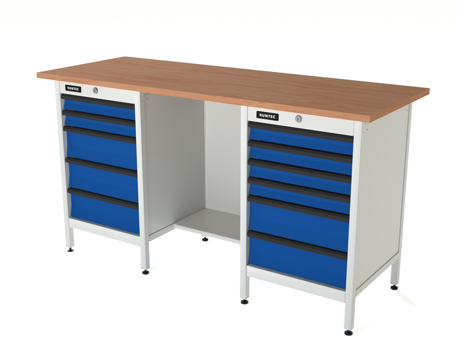 Верстак серии Standart, 1600 мм, фанера, тумба с 5-ю ящиками + тумба с 6-ю ящиками, синий (светло-серый) RAL 5005 (7035)