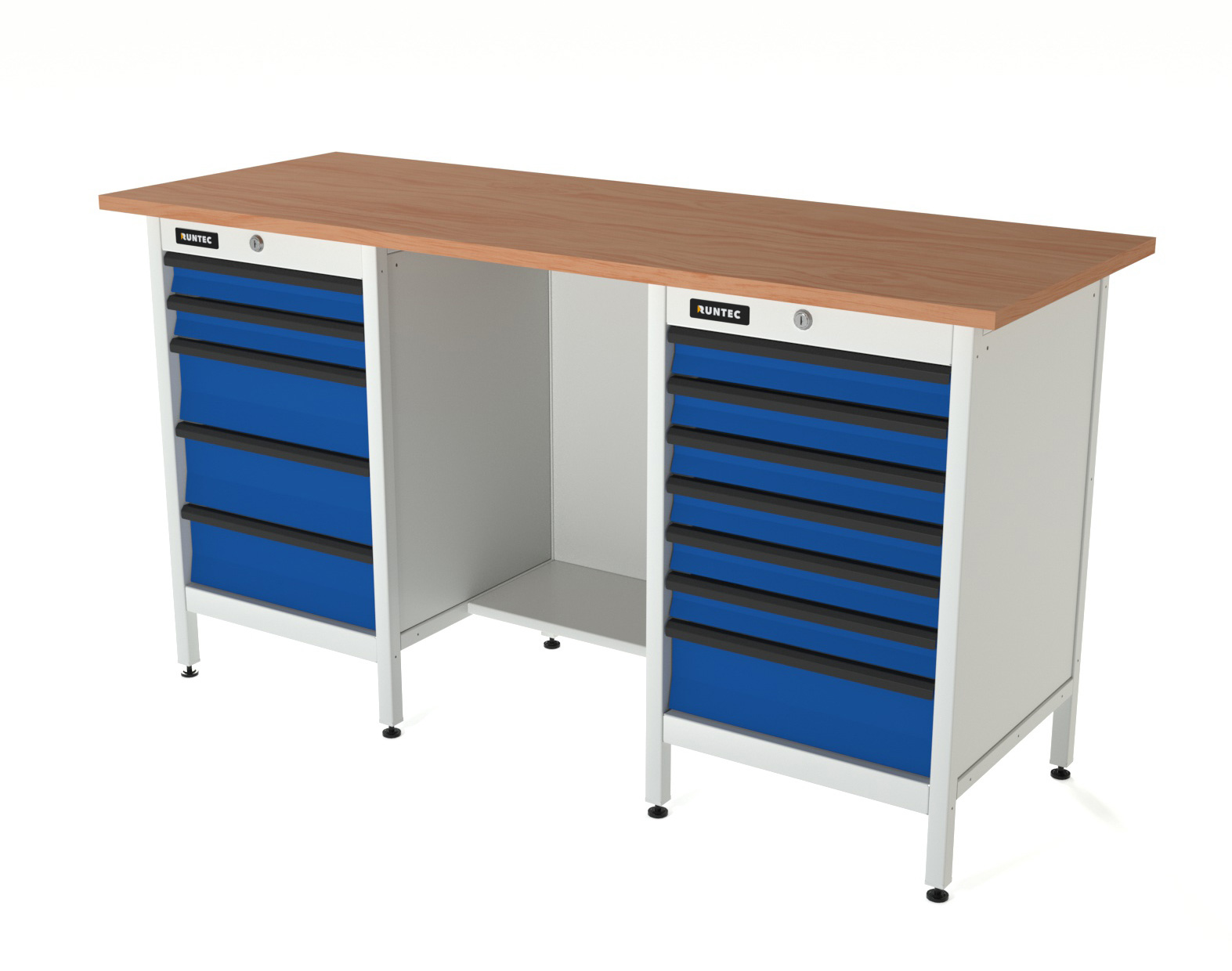 Верстак серии Standart, 1600 мм, фанера, тумба с 5-ю ящиками + тумба с 7-ю ящиками, синий (светло-серый) RAL 5005 (7035)