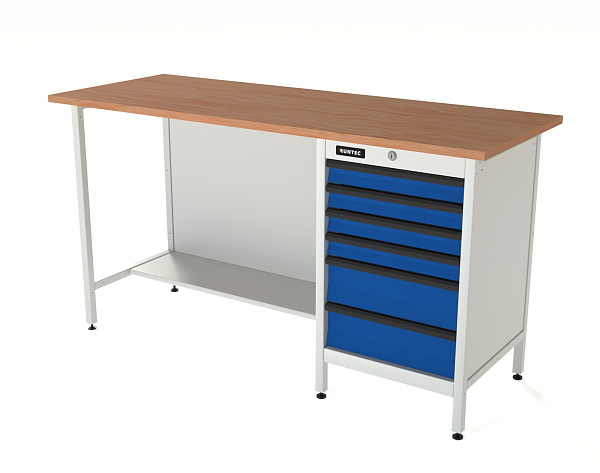 Верстак серии Standart, 1600 мм, фанера, тумба с 6-ю ящиками, синий (светло-серый) RAL 5005 (7035), RUNTEC, RTS16F-TS6-NS-5005(7035)