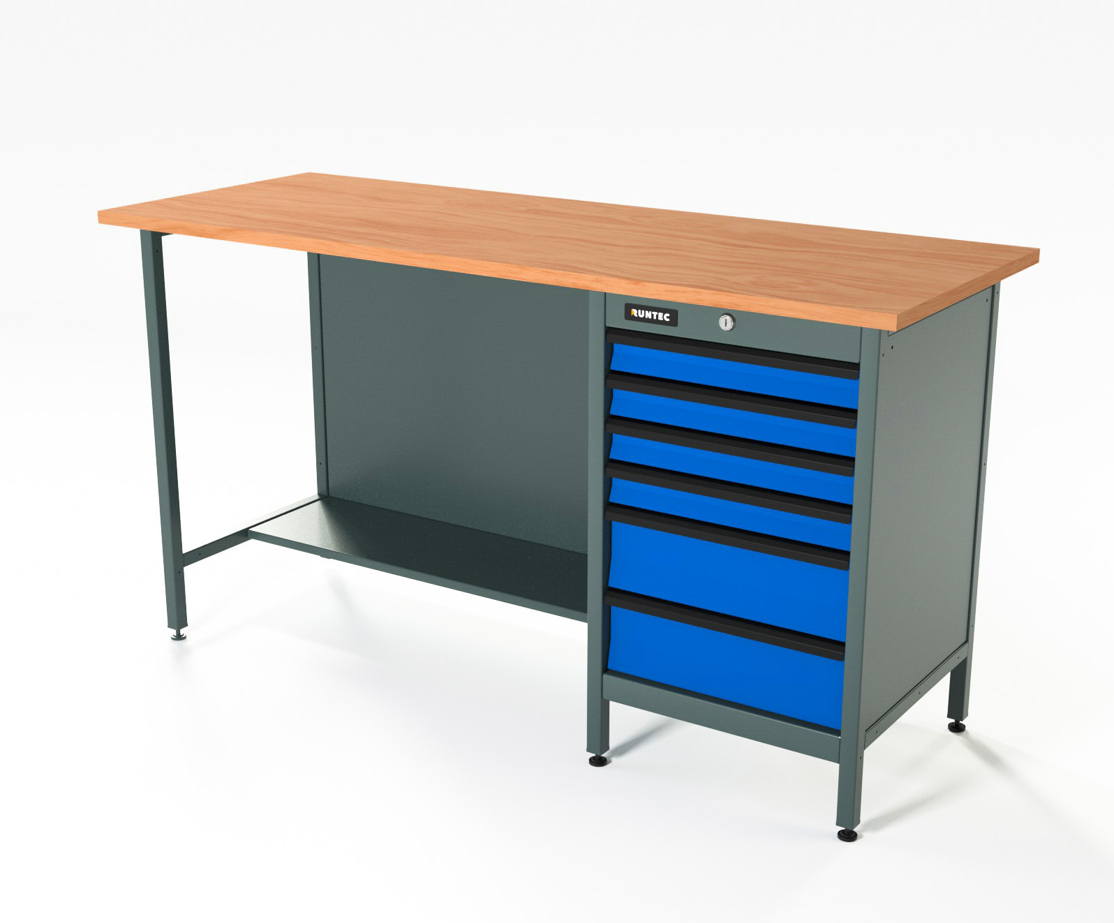 Верстак серии Standart, 1600 мм, фанера, тумба с 6-ю ящиками, синий RAL 5005
