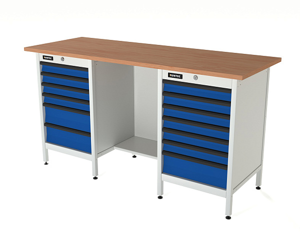 Верстак серии Standart, 1600 мм, фанера, тумба с 6-ю ящиками + тумба с 7-ю ящиками, синий (светло-серый) RAL 5005 (7035), RUNTEC, RTS16F-TS6-TS7-5005(7035)