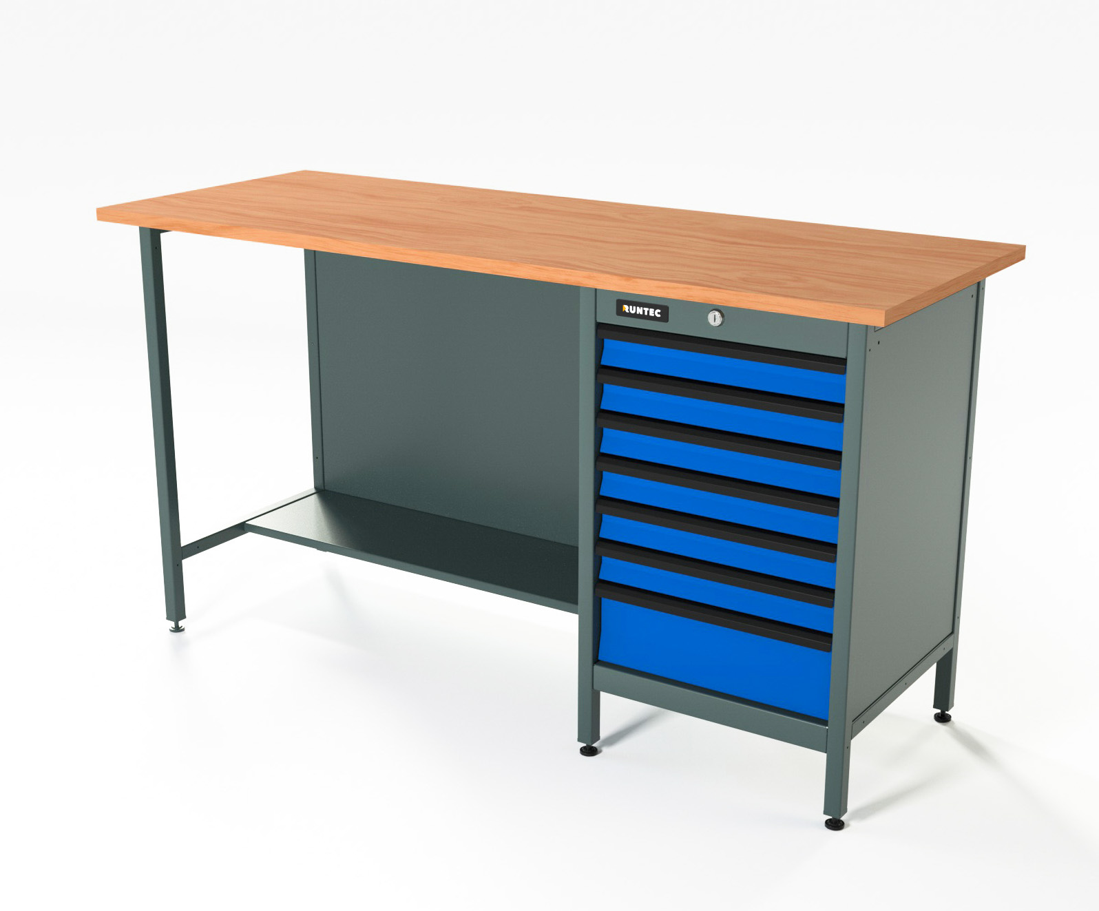 Верстак серии Standart, 1600 мм, фанера, тумба с 7-ю ящиками, синий RAL 5005