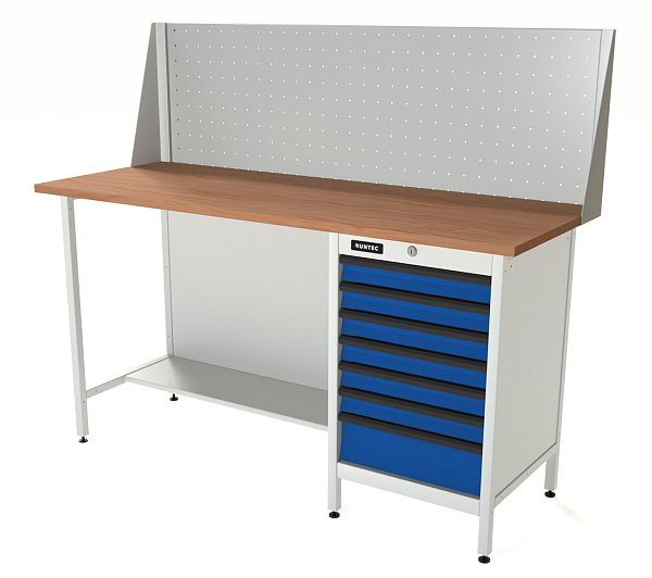 Верстак серии Standart, 1600 мм, фанера, тумба с 7-ю ящиками, экран 500, синий (светло-серый) RAL 5005 (7035), RUNTEC, RTS16F-TS7-NS-P16-5005(7035)