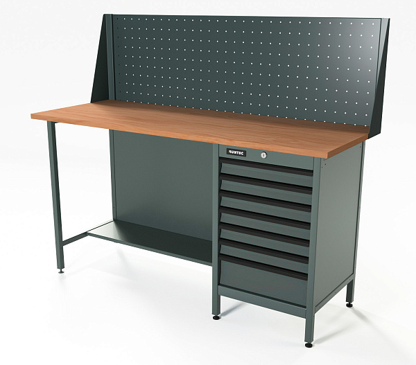Верстак серии Standart, 1600 мм, фанера, тумба с 7-ю ящиками, экран 500, серый RAL 7016