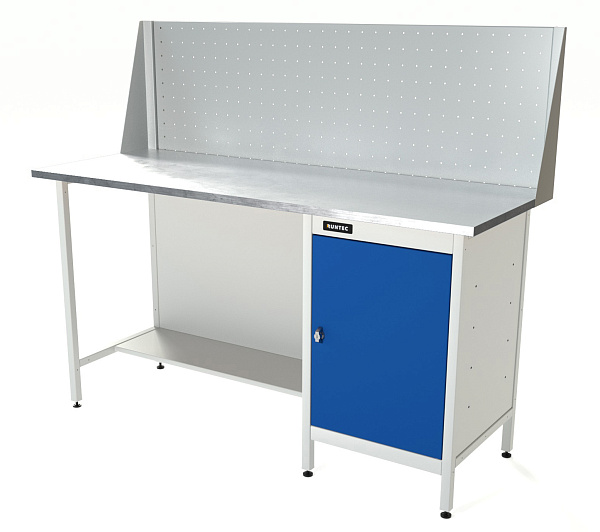 Верстак серии Standart, 1600 мм, оцинк, тумба с дверью, экран 500, синий (светло-серый) RAL 5005 (7035), RUNTEC, RTS16Z-TS0-NS-P16-5005(7035)