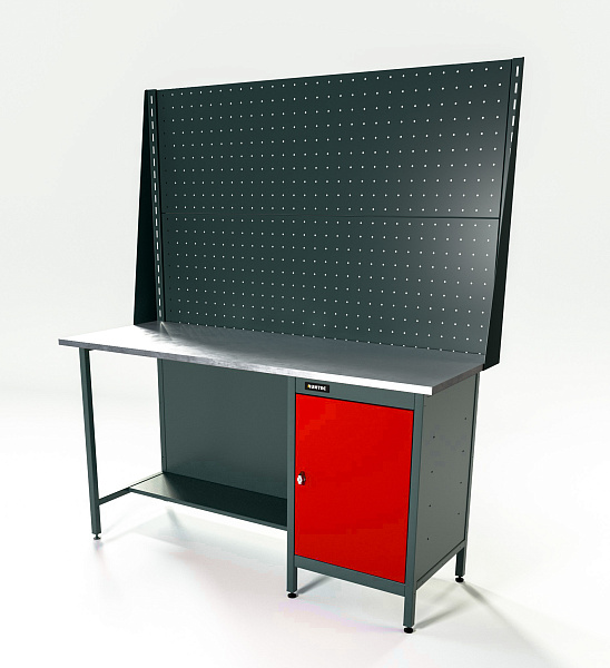 Верстак серии Standart, 1600 мм, оцинк, тумба с дверью, экран 1000, красный RAL 3020