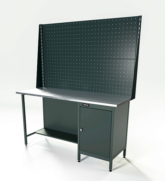 Верстак серии Standart, 1600 мм, оцинк, тумба с дверью, экран 1000, серый RAL 7016