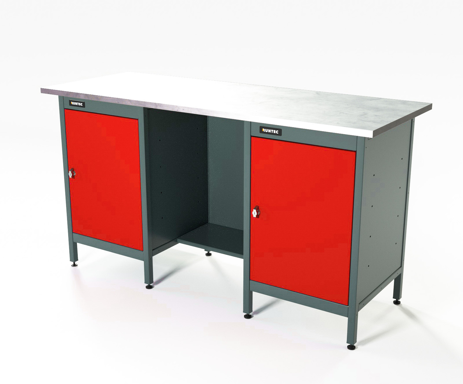 Верстак серии Standart, 1600 мм, оцинк, тумба с дверью + тумба с дверью, красный RAL 3020