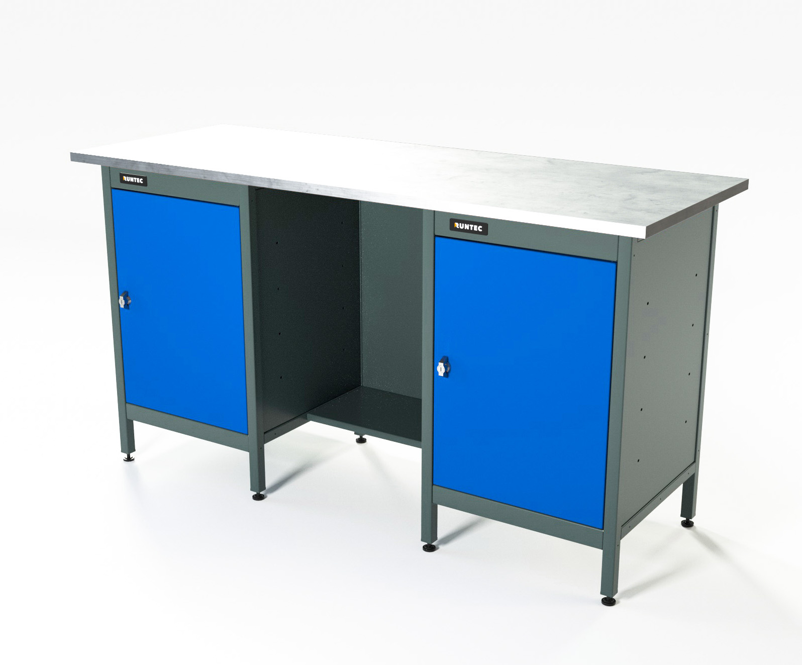 Верстак серии Standart, 1600 мм, оцинк, тумба с дверью + тумба с дверью, синий RAL 5005