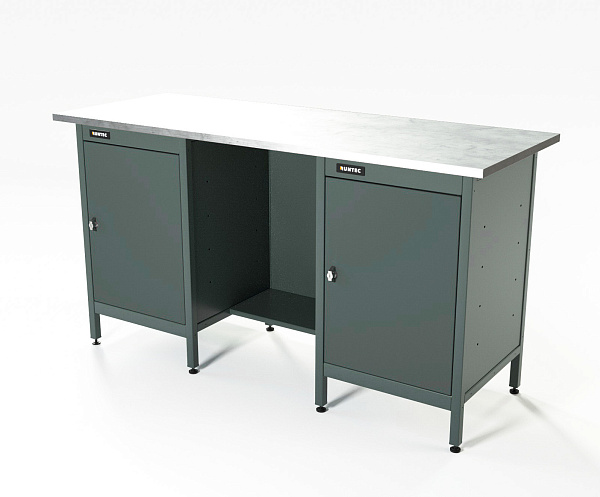 Верстак серии Standart, 1600 мм, оцинк, тумба с дверью + тумба с дверью, серый RAL 7016